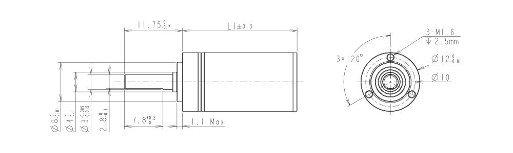 | 齒輪箱長(zhǎng)度L1(mm) | 17.5 | 23.3 | 27.8 |